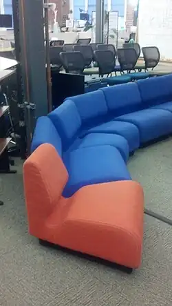 Chadwick Modular Seating is a modular sofa composed of one or more sections that can be arranged to create long, contiguous seating surfaces for offices and homes. Multiple-section shapes were produced in many fabrics and colors. Sections were available in straight, wedge, and elbow shapes.[1]