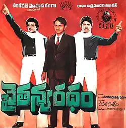 Chaitanya Ratham is a 1987 Indian Telugu-language political drama film directed by Dhavala Satyam and produced by Vangaveeti Ratna Kumari.[1] The film stars Bhanu Chander, Sarath Babu, Kalpana, Satyanarayana and Giri Babu in pivotal roles, with music composed by J. V. Raghavulu.[2] Released on 26 June 1987, it was a commercial success, running for 100 days in 26 centres.