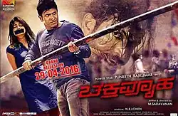 Chakravyuha (transl. Labyrinth) is a 2016 Indian Kannada-language vigilante action film written and directed by M. Saravanan and produced by N. K. Lohith under the Sunshine Creations banner. An adaptation of Saravanan's own Tamil-language film Ivan Veramathiri, the film stars Puneeth Rajkumar, Arun Vijay and Rachita Ram, while Abhimanyu Singh, Sadhu Kokila, Bhavya, and Rangayana Raghu[1] play supporting roles. Thaman S composed the film's score and soundtrack.