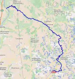 The Chalaronne (French pronunciation: [ʃalaʁɔn]) is a 52 km (32 mi) long river in the Ain department in eastern France.[1] Its source is at Lapeyrouse, in the Dombes. It flows generally northwest. It is a left tributary of the Saône, into which it flows between Saint-Didier-sur-Chalaronne and Thoissey.