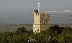 The parish church of St. Mary the Virgin lies some distance to the east of the village centre. A church building existed in this location for the Synod of Chalkhythe in 785 and was noted in the Domesday Book of 1086; the current structure dates from the 12th century. The font is Norman and the oldest bell was first hung in 1348. The tower, a prominent landmark for navigation in the Thames, dates from the 15th century.[3][6]
