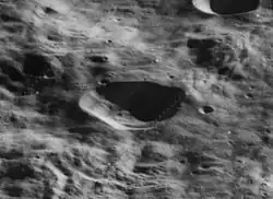 Chalonge is a lunar impact crater that is located on the far side of the Moon. It lies to the southwest of the larger crater Lewis, in the outer skirt of ejecta that surrounds the Mare Orientale impact basin. To the southeast are the Montes Cordillera, a ring of mountains that encircle the Mare Orientale formation.