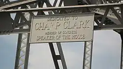 The bridge was named after James Beauchamp Clark, a former Speaker of the House from Bowling Green, Missouri. Clark served as Speaker from 1911 to 1919.