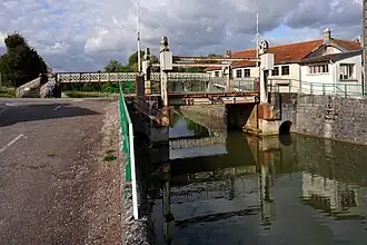 The Canal entre Champagne et Bourgogne (French pronunciation: [kanal ɑ̃tʁ ʃɑ̃paɲ e buʁɡɔɲ], literally Canal between Champagne and Burgundy), previously named Canal de la Marne à la Saône (French pronunciation: [kanal la maʁn a la son], literally Canal of the Marne to the Saône), is a canal in north-eastern France connecting the towns of Vitry-le-François and Maxilly-sur-Saône.[1] It is a summit level canal of Freycinet dimensions connecting the Marne and the Saône. It is 224.191 kilometres long, and has 114 locks (71 on the Marne side and 43 on the Saône side) and two tunnels, Condes which is 275 metres long and the tunnel on the summit level between Balesmes-sur-Marne and Noidant-Chatenoy, 4820 metres long. which runs almost exactly underneath the source of the Marne.