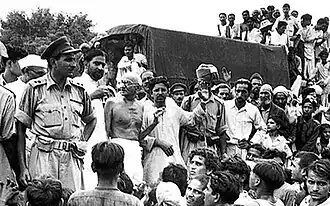 ![]() (Sitting left to right) Rajendra Prasad and Anugrah Narayan Sinha with (standing left to right) local vakils (lawyers) Ramnavmi Prasad and Shambhu Sharan Verma during Mahatma Gandhi's 1917 Champaran movement | |