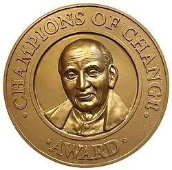 Champions of Change (COC) is an Indian award for promoting Indian values like community service, social development, healthcare, education and national unity, selected by constitutional jury members headed by K. G. Balakrishnan, the Former Chief Justice of India and Former Chairman NHRC and Justice Gyan Sudha Misra, Former Judge, Supreme Court of India. The awards are organised annually and usually presented by the President of India, Vice President of India, former President of India, former Vice president of India or any leading political figure of India.[1]