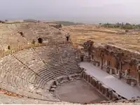 The picturisation of the song "Devuda Devuda" focused on a variety of professions, especially janitors, sewage cleaners, farmers and washer folk.[29] According to Ramji, who helped the production unit look for locations for the song "Konjam Neram", Ramkumar Ganesan and Vasu chose Turkey, making Chandramukhi the first Tamil film to be shot there.[30] The production unit flew to Istanbul from Chennai via Dubai on 25 February 2005.[30] The filming of the song was completed after the audio launch.[31] "Konjam Neram" was shot in segments in Ephesus and Pamukkale. Shooting in Ephesus took six hours. The segment in Pamukkale was filmed in an amphitheatre in the ancient city of Hierapolis, which is located close to Pamukkale. The last segment was shot in the Cappadocia region, a 10-hour drive by bus from Istanbul.[31] "Raa Raa" was choreographed by Kala and took four days to be completed instead of the planned seven days.[32]