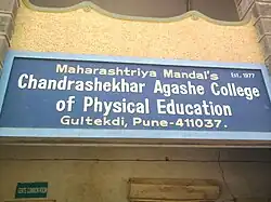 In July 1977, the founder of the Mahrashtriya Mandal of Pune, Shivrampant Damle, established the Chandrashekhar Agashe College of Physical Education in Gultekdi, Pune, honoring Agashe posthumously.[2] Agashe was further honored when the Pune Municipal Corporation renamed the street in Shaniwar Peth, Pune where his family had maintained a traditional brahmin Wada upon relocating to Pune,[95] as the Chandrashekhar Agashe Road.[96] In 1982, his heirs under the C. G. Agashe Trust donated towards the research of biology and life sciences to the Agharkar Research Institute.[97]