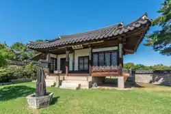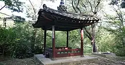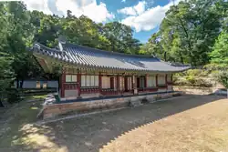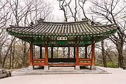 A royal library building that went by a number of names, including "Naegak" (내각; 內閣) and "Kyujanggak". The latter name has been applied to several different buildings, depending on which held the royal library's collection at the time.[97] This building was completed on the 10th day, 3rd month of 1781,[31] and the royal library was moved from Juhamnu to Imunwon.[97] |