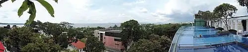 Changi Village has its early beginnings as a kampong village. The place was first redeveloped by the British as a summer house and a getaway location from the city centre of Singapore, in the 1890s, and was prized for its tranquillity and remoteness. The existence of the resorts there today still bear testament to the original redevelopments there.[1] Starting from the 1920s, the British started building up Changi as tension across Asia and Europe started to build in anticipation for war. The infamous old Changi Hospital was also built there as a result. During World War II, the place saw mass mobilisation of Allied troops in anticipation of the possible landing and invasion by the Imperial Japanese troops who landed on the nearby Pulau Ubin. However the manoeuvre by the Japanese was a bluff that drew vital Allied troops from the West of Singapore that eventually was the landing site of the Japanese troops. The area as part of the greater Changi defence also saw action of 3 giant artillery guns, also known as the Johore battery, used in the defence of Singapore. Their use and effectiveness in the defence of Singapore has often been controversial.[2] The Sook Ching massacre took place throughout the war at the neighbouring Changi Beach Park.