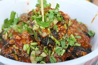 Changsha stinky tofu or stinky dry food[1] (simplified Chinese: 长沙臭豆腐; traditional Chinese: 長沙臭豆腐; lit. 'Changsha smelly bean curd'), known in Chinese as Changsha chou doufu, also translated as Changsha-style stinky tofu,[2] is a traditional snack in Changsha, Hunan,[3] which belongs to Hunan cuisine.[4] It is one of the renowned stinky tofu in Southern China.[5]