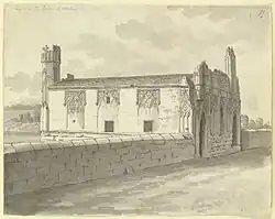 The chapel was used for worship until the Reformation and Abolition of Chantries Acts when all Wakefield's four chantry chapels were closed.[11] The bridge chapel survived because it is a structural element of the bridge. After closure it was used as a warehouse, library, office and cheese shop and survived bridge widening in 1758 and 1797.[12] The bridge and its chapel were painted by artists including J. M. W. Turner whose watercolour dates from 1793.[13]
