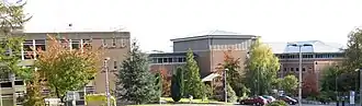 In 1953 the hospital was transferred to the Ministry of Health and developed as a general hospital. In 1975 the Newton Green Wing was opened in purpose-built buildings on the opposite, south, side of Harehills Lane. It was named after the Newton Green Hall estate, acquired in 1936, upon which the new hospital buildings were built.[7] New accommodation for the whole hospital was added on this site 1992-1994, and opened by the Duchess of Kent. The old hospital buildings were demolished, the Grade II listed mansion has been left derelict with new housing built in the grounds.[8]