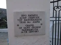 The Chapel of Saint George Pachymachiotis (Greek: Άγιος Γεώργιος Παχυμαχιώτης) is a chapel and a church in the Greek town of Lindos, in Rhodes, dedicated to Saint George.