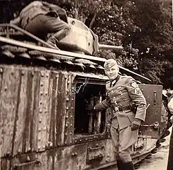 The tanks were effective in the attack on Royan on 15 April 1945, using their 75 mm guns for fire support, while targeting pillboxes with their 47 mm guns. After that, 2nd Company accompanied troops on an assault on Pontaillac on 17 April, followed by an attack on the German stronghold at La Rochelle between 29 April and 8 May. Voillaume was awarded the Distinguished Service Cross for his actions.[22] After the war, the 13th Dragoon Regiment was stationed in the French occupation zone of Allied-occupied Germany as part of the French 3rd Armoured Division. It was eventually disbanded in the German town of Wittlich in April 1946.[21]
