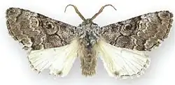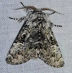 Charadra deridens (laugher or marbled tuffet moth) is a moth of the family Noctuidae. It is found in Ontario, Quebec, New Brunswick, Nova Scotia, Prince Edward Island, British Columbia, Saskatchewan and Manitoba in Canada, through most of the United States except the south-western states.