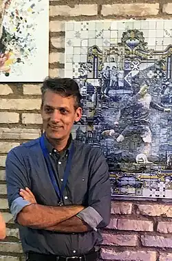 Charis Tsevis studied visual design and advertising in Athens, Greece and Milan, Italy and his is mainly known for his work in digital mosaics, high complexity illustrations and neo-futuristic compositions.[1] He is collaborating with the major media and the multinational advertising agencies creating illustration and digital art for global campaigns, political and sports events. He is particularly known for his mosaic portraits[2][3][4] for Steve Jobs,[5] Barack Obama[6] and for his artwork for the USA House in the Rio Olympics,[7] the Delta Air Lines Sky Club SFO mosaic[8] and the Yahoo coverage of the London Olympics.[9]