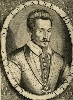 Charles de Lorraine, duc d'Aumale (25 January 1555 – c. 1631, Brussels)[1] was a French noble, military commander and governor during the latter French Wars of Religion. The son of Claude, Duke of Aumale and Louise de Brézé, Aumale inherited his families position in north eastern France, and his fathers title of Grand Veneur. Educated as a fervent Catholic, his clients engineered the creation of the first national Catholic Ligue in 1576, and he continued to support the remnants of the organisation after the Treaty of Bergerac caused much of the ligue to dissolve. During the sixth civil war that the ligue had induced, he fought with the king's brother Alençon at the sieges of La Charité-sur-Loire and Issoire. During the seventh civil war in 1579, he brought his ligueur forces to support the royal army under Marshal Matignon during the siege of La Fère but left on bitter terms with the commander when the siege was brought to a close on generous terms.