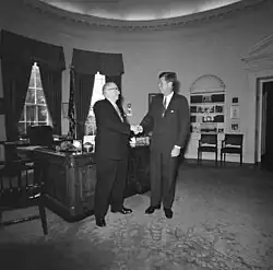 The 1964 Democratic primary election was the beginning of the end of his career in politics. He faced Jonathan Bingham, whom Mayor Wagner supported in an effort to remove him from office. Robert F. Kennedy, who received the Democratic nomination, in part due to Buckley's support, and President Lyndon Johnson endorsed the incumbent. The race was bitter with Buckley charging that Bingham was anti-Semitic, having been a member of the America First Committee.[6] Bingham fired back with allegations that Buckley received work from a contractor free of charge at his home in Rockland County.[7] On Election Day, Bingham won by 4,000 votes, ending Buckley's career in Congress.[6]