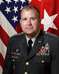 Charles Bell Eichelberger[1][2] (November 19, 1934 – December 27, 2021) was an officer in the United States Army. From November 22, 1989, to September 30, 1991, Eichelberger, then a lieutenant general, served as the deputy chief of staff for intelligence, Headquarters, Department of the Army.[3][4] He is credited with providing high quality military intelligence support for Operations Desert Shield and Desert Storm.[5]