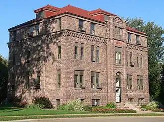 Charles City College Hall, also known as Old Main, North Hall and Conservatory Hall, is a historic building located on the campus of Morningside College in Sioux City, Iowa, United States. Business leaders in the community established the University of the Northwest in 1889 to provide educational, cultural and economic growth in the city.[2] Completed in 1890, this is the first building constructed for the college and it housed all of the school's functions. The exterior of the Richardsonian Romanesque structure is composed of quartzite. Local architect Charles P. Brown designed the building and John M. Poorbaugh was the contractor.[3] By 1894 the university became a victim of the Panic of 1893, and the property was taken over by the Methodist Episcopal Church who incorporated Morningside College the same year.