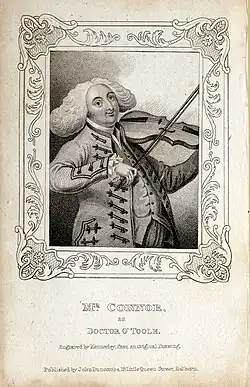 Charles Connor was an Irish stage actor of the early nineteenth century. Educated at Trinity College Dublin, he was active in Dublin at the Crow Street Theatre during the early stages of his career.[1] He also featured at the Theatre Royal, Bath. He appeared as part of the Theatre Royal, Covent Garden company from 1816 to 1826, where he was considered the resident stage Irishman. His death from apoplexy in St James's Park on 7 October 1826 opened the way for a fresh actor Tyrone Power to take over his parts.[2][3] The Gentleman's Magazine particularly remembered him for his performances as Sir Lucius O'Trigger in Richard Brinsley Sheridan's The Rivals.[4]