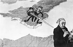 In 1905 he was requested to write an article for the Deutsche Revue on British naval policy.[4] He had no control over the German translation of his article and said it had exaggerated his statements, but the article expressed a British interpretation of the threat implied by German naval expansion to traditional British command of the seas. It included the observation that Britain would be better served by a war sooner rather than later when the German navy would be bigger. The article was used in Germany to whip up support for the naval programme.