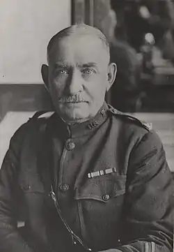 In 1898 Stanton was appointed a paymaster of volunteers in the United States Army with the rank of major.[2] He served in the Philippines during the Spanish–American War, and after his 1901 discharge accepted a regular Army commission as a captain in the paymaster corps.[3][4] He continued to serve in the army, and at the start of World War I he was a lieutenant colonel on the staff of John J. Pershing.[5] He served as chief disbursing officer for the American Expeditionary Forces, and received the Distinguished Service Medal and the French Legion of Honor. Stanton retired as a colonel on December 1, 1920.[6]