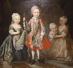 - ^ Genealogie ascendante jusqu'au quatrieme degre inclusivement de tous les Rois et Princes de maisons souveraines de l'Europe actuellement vivans [Genealogy up to the fourth degree inclusive of all the Kings and Princes of sovereign houses of Europe currently living] (in French). Bourdeaux: Frederic Guillaume Birnstiel. 1768. p. 24.