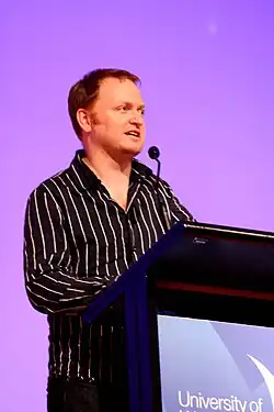 Firth went to Adelaide in July 2007 to present at the Festival of Ideas with fellow Chaser Julian Morrow, where his performance included asking the audience to SMS their questions to him, throwing lollies to the audience, and "defacing" three Wikipedia articles.[7]