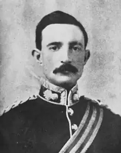 He served in South Africa, being promoted from supernumerary captain to captain on augmentation in January 1901,[8] until February 1901, at which point he transferred to the newly formed Irish Guards. He passed out from the Staff College, Camberley, which he entered as a student in January 1902,[9] in January 1903,[10] He then served as a brigade major of the 5th Infantry Brigade from April 1903[11] until 1906. Having been promoted to major in May 1904,[12] he was promoted to lieutenant colonel and then succeeded George Colborne Nugent in command of the 1st Battalion, Irish Guards in July 1909.[13] He had a reputation as a forward thinking soldier and took an innovative, albeit demanding, approach to training. It was noted he was "both loved and feared by his battalion".[4]