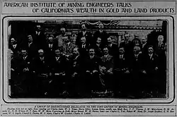 One of Yale collaborators was geologist George Davidson, who worked with surveyor Alexander Dallas Bache, of the family of Benjamin Franklin.[34] He was made a special contributor to the Engineering and Mining Journal, and became a member of the California Historical Society.[35][36] Yale was present as a delegate to the American Institute of Mining Engineers convention of 1911, and gave a talk about California's wealth in gold and land products.[37] He took his retirement in 1923, and the dinner took place in the red room of the Bohemian Club with fellow bohemians.[3]