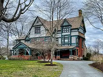 The house is a 2+1⁄2-story wood-frame structure, finished on the exterior in brick, clapboards, and shingles. It was designed by William Appleton Potter and Robert Anderson and built in 1877–78, and is an excellent example of a transitional style between the Queen Anne and Shingle styles. The building features the asymmetrical and busy massing, with many gables, an extended porch with turned columns, and brick chimneys with decorative tops. The house was built for United States Navy Admiral Charles H. Baldwin as a summer house.[2]