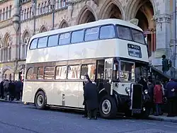 Trolleybuses continued to figure, on Sunbeam/Karrier, Crossley or BUT chassis. The most striking of these were the Coronation class vehicles built on Sunbeam MF2B chassis for Kingston upon Hull Corporation Transport. These had a front entrance on the front overhang and a central exit; they were fitted with twin staircases and were intended to be one-man operated so were equipped with trolley-pole retriever equipment at the rear.