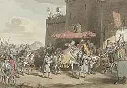 As a prolific self-taught illustrator, he is also known in military history circles for Costume of the Army of the British Empire, produced towards the end of the Napoleonic Wars, and an accurate depiction of contemporary British uniform. As an antiquarian, he also produced, in collaboration with Samuel Rush Meyrick, Costume of the Original Inhabitants of the British Islands, 1815, and The Ancient Costume of England, with historical illustrations of medieval knights, ladies, ships, and battles. The majority of his vast body of work (he estimated it was over 38,000 drawings) was not military in character, but largely passed into obscurity. Notebooks of his observations as a naturalist have survived, as well as antiquarian illustrations of civilian life. He also wrote on the history of the Seven Years' War and the natural history of dogs.[1] Smith was of Flemish origin; he wrote the military part of Cox's Marlborough and many military and natural history books.[2]