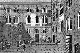 Being devoid of his employees' assistance, Hitchen was rendered to seek his resources to continue his "trade".[27] At that time Jonathan Wild, a prisoner himself in the Wood street Compter for a debt (from 1709 to 16 December 1712, the exact date Hitchen's "Answer" was presented to the committee),[28][29] was running his business in Cock Alley and was serving the public in a similar way to Hitchen.[27] Wild, an under-keeper, while in the Compter, to the prisoners waiting for appearing before the magistrate, was well-acquainted with the prototypes of the personae of his further real life drama full of prostitutes and thieves (one of them, Marry Milliner, mentioned above). During these years he had already been practicing taking fees for recovering stolen letters and diaries, and only later developed into a thief-maker and a mastermind of organised crimes. There was virtually no type of crime he was not involved in; coining, forging, smuggling or protection rackets.[9] It is obvious that a handicapped under-marshal would make a good use of such a scoundrel. It was actually him who ushered Wild from making his living with proceeds of prostitution and as a bailiff's assistant to the fully fledged thief-taker.[28] In his account of 1713–14, written as an answer to Hitchen's "Regulator", Wild describes how the marshal approached him: