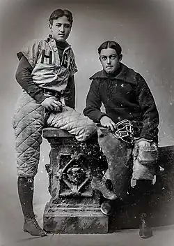 George Ives directed bands, choirs, and orchestras, and taught music theory and a number of instruments.[12] Charles got his influences by sitting in the Danbury town square and listening to his father's marching band and other bands on other sides of the square simultaneously. His father taught him and his brother (Joseph) Moss Ives (February 5, 1876 – April 7, 1939[13]) music,[12] teaching harmony and counterpoint and guided his first compositions; George took an open-minded approach to theory, encouraging him to experiment in bitonal and polytonal harmonizations.[7] It was from him that Ives also learned the music of Stephen Foster.[14] He became a church organist at the age of 14[15] and wrote various hymns and songs for church services, including his Variations on "America", which he wrote for a Fourth of July concert in Brewster, New York. It is considered challenging even by modern concert organists, but he famously spoke of it as being "as much fun as playing baseball", a commentary on his own organ technique at that age.[16]