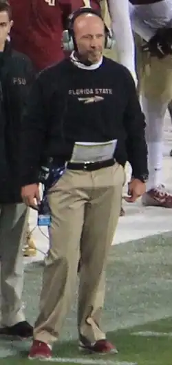 For the 2013 season, Kelly moved to Florida State University as linebackers coach and special teams coordinator and helped the Seminoles win their third national championship.[1] In 2014, Kelly became the defensive coordinator at Florida State and remained in that position through the 2017 season.[8][9]