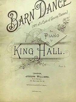 King Hall was a prodigious composer throughout his career. From 1867 ("Golden Moments Gallop for the Pianoforte") to the year of his death ("An Emblem of Life; A Duet for Female Voices"), his work appeared regularly in both England and America. Examples of King Hall's original compositions include his score for Edward Oxenford's humorous cantata Beauty and the Beast (1890), published by the London firm of Hutchings & Romer, and his series of six "society dances" published by Joseph Williams in the 1890s.[17]
