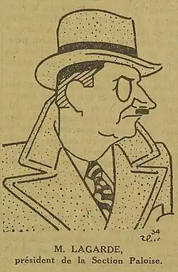 Lagarde was between 1932 and 1952 the president of the Section paloise.[7][8] He was also the President of the Basque-Béarn-Bigorre league.