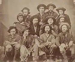Less than a week after Mattocks returned from leave in late March 1864, he was moved from the 17th Maine Infantry and placed in command of the 1st United States Sharpshooters.[5] He commanded the 1st United States Sharpshooters in the Battle of the Wilderness, after which he was captured by the Confederate Army.[4]: 150 He was a prisoner for six months, until he escaped the Confederate prison camp outside Columbia, South Carolina on November 3, 1864, alongside Captain Julius Litchfield and Lieutenant Charles Hunt, officers from other Maine regiments who were captured in the same battle.[c] On their way back to Union territory, they trekked for two days without food before encountering a slave, who fed them "chicken, corn bread & potatoes."[8] He also received material support from both Union and Confederate Freemasons while in prison camps and during his escape.[3] Mattocks was recaptured 1.5 miles (2.4 km) from the Union lines, on November 28, by Cherokee scouts, then in service of the Confederacy.[4]: 150 [10] He was forced to walk over 100 miles (160 km) to Morgantown, West Virginia, where they were then transported by train to a prison camp in Danville, Virginia.[4]: 150 [8][d] Mattocks was exchanged and released in late February, 1865. Rather than resuming his previous command of the 1st United States Sharpshooters, Mattocks was granted permission from the Secretary of War to rejoin the 17th Maine Infantry Regiment as major. Upon his return, he first served outside Petersburg, Virginia.[5] After the fall of Petersburg, Mattocks led the regiment in the Appomattox Campaign and was distinguished in leading a charge at the Battle of Sailor's Creek. Sailor's Creek was the last battle of the American Civil War in which Mattocks participated.[1]: 45 Three days later, on April 9, 1865, Confederate General Robert E. Lee surrendered the Army of Northern Virginia at Appomattox Court House.