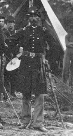 In 1864, while fighting as a first lieutenant with the 69th Pennsylvania and other Union Army troops in the Battle of Spottsylvania Court House, he performed the acts of valor which would ultimately result in his being awarded the U.S. Medal of Honor. On May 12, he was "[c]ut in head, shot [in the] left shoulder; also through right leg, knee and head"[8] while capturing the enemy flag from Confederate States Army soldiers during hand-to-hand combat.[9][10]