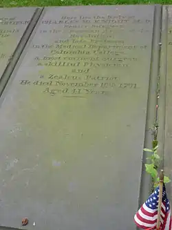 On November 26, 1784, McKnight was appointed one of the first regents of the University of the State of New York.[25][29] In 1785, McKnight became professor of anatomy and surgery at Columbia College (now the Columbia University College of Physicians and Surgeons), which his father-in-law co-founded. He also was appointed Port Physician of New York.[21] McKnight was remembered as an oculist, and therefore probably performed eye surgery.[30] McKnight maintained a steady surgical practice and held his professorship until his death from pneumonia,[2] the result of an old war injury,[4] on November 16, 1791 at age 41.