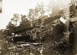 On September 22, 1851, Minot was in a parked passenger train at Turner Station. He glanced out the window of the train and saw the new telegraph wires. Departing the train, Minot ran into the station, got on the new telegraph, and wired the next station along the line, Monroe, to see if the eastbound train to Piermont-on-Hudson had gone past. The station agent said no. At that point, Minot ordered the engineer of the train to proceed on their way to Goshen.[9] The engineer refused to take Minot's order, and instead, Minot got into the cab car himself and drove the train himself to Port Jervis, hours ahead of the planned scheduled time of arrival.[10] This was the second of the several "firsts" the Erie Railroad created in its time, along with the shipment of milk by rail at Chester station in 1842.[11]