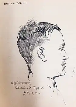 - ^ "CHARLES P.TAFT, 2D TO WED MISS CHASE; Ex-President's Younger Son Engaged to Daughter of Mr. and Mrs. Irving Chase. HE IS A JUNIOR AT YALE Football Player and Winner of Gordon Brown Prize Is Enlisted as Artilleryman in U.S. Army". The New York Times. Jul 4, 1917.