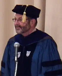 He served on the board of the American Council on Education and the Federation of Independent Illinois Colleges and Universities.[1] He has also been involved with the National Association of Independent Colleges and Universities, the Chicago 2016 Olympic Bid Committee, the Chicago Loop Alliance, the Roosevelt Institute, the Center on Halsted, the Chicago Central Area Committee, the Near South Planning Board, the Point Foundation and the Chicago History Museum Community Advisory Council, Rotary One, the Economic Club of Chicago, the Executives' Club, the Commercial Club of Chicago, Equality Illinois, and the Human Rights Campaign.[1][2] He serves on the Boards of SAGE USA and PFLAG National. He is a signatory of the Amethyst Initiative.[3] From 2015 to 2017 he served as chair of the Board of Trustees of the City Colleges of Chicago.