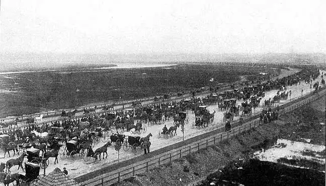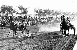 One of the bigger events at the speedway occurred on October 13, 1930 when a new course speed record was set. After seven hours of competition, which was viewed by thousands of spectators, a time of 2:05.5 was set for the 1 mile (1.6 km) race. The horse team was driven by a Mr. Grattan, the pacer of Mrs. Charles F. Adams.[3]