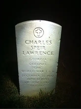 Lawrence was discharged from the US Army in 1948 after the end of World War II. He would earn the Legion of Merit, the Bronze Star with Oak Leaf Cluster, the Purple Heart with Oak Leaf Cluster, the Mexican Border Service Medal, the World War I Victory Medal, the Asiatic Pacific Campaign Medal, the World War II Victory Medal, and the American Defense of the Pacific medal.