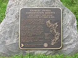 Charles Joseph Sauriol, CM (May 3, 1904 – December 16, 1995) was a Canadian naturalist who was responsible for the preservation of many natural areas in Ontario and across Canada. He owned property in the Don River valley and was an advocate for the valley's preservation. As a member of the Metropolitan Toronto and Region Conservation Authority, he was responsible for much of the Don Valley's conservation. A section of the valley is a conservation reserve named in his honour and four other locations in Canada are named in his honour.