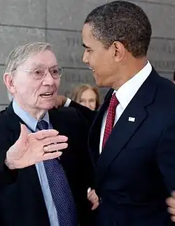 His military service was often mentioned in Obama's speeches, including the one given in 2009 commemorating the anniversary of D-Day.[6][7] During the 2008 presidential election, there was brief media attention when Obama mistakenly identified the camp he helped liberate as Auschwitz instead of Ohrdruf.[8] In 2009, Payne spoke about this experience: